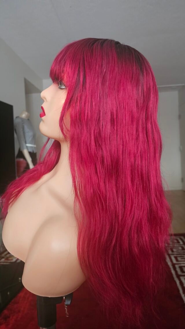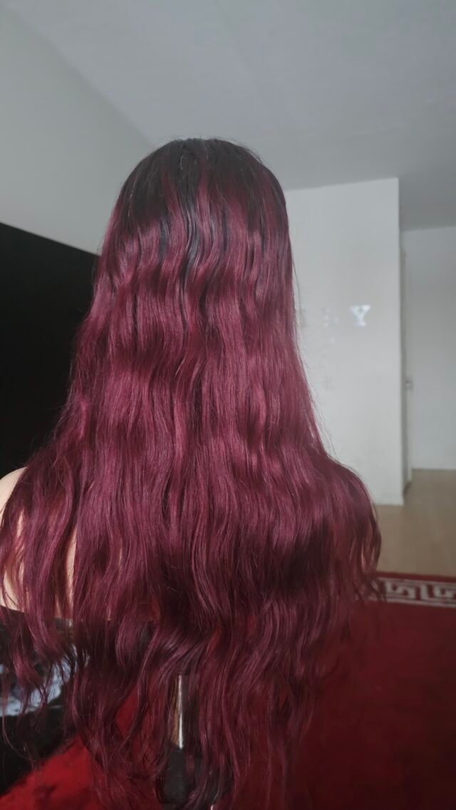 Laissez-vous séduire par cette perruque en cheveux humains de 20 pouces, dans une magnifique teinte bordeaux burgundy ombrée. Elle apporte une touche audacieuse et élégante, idéale pour un style affirmé et moderne
