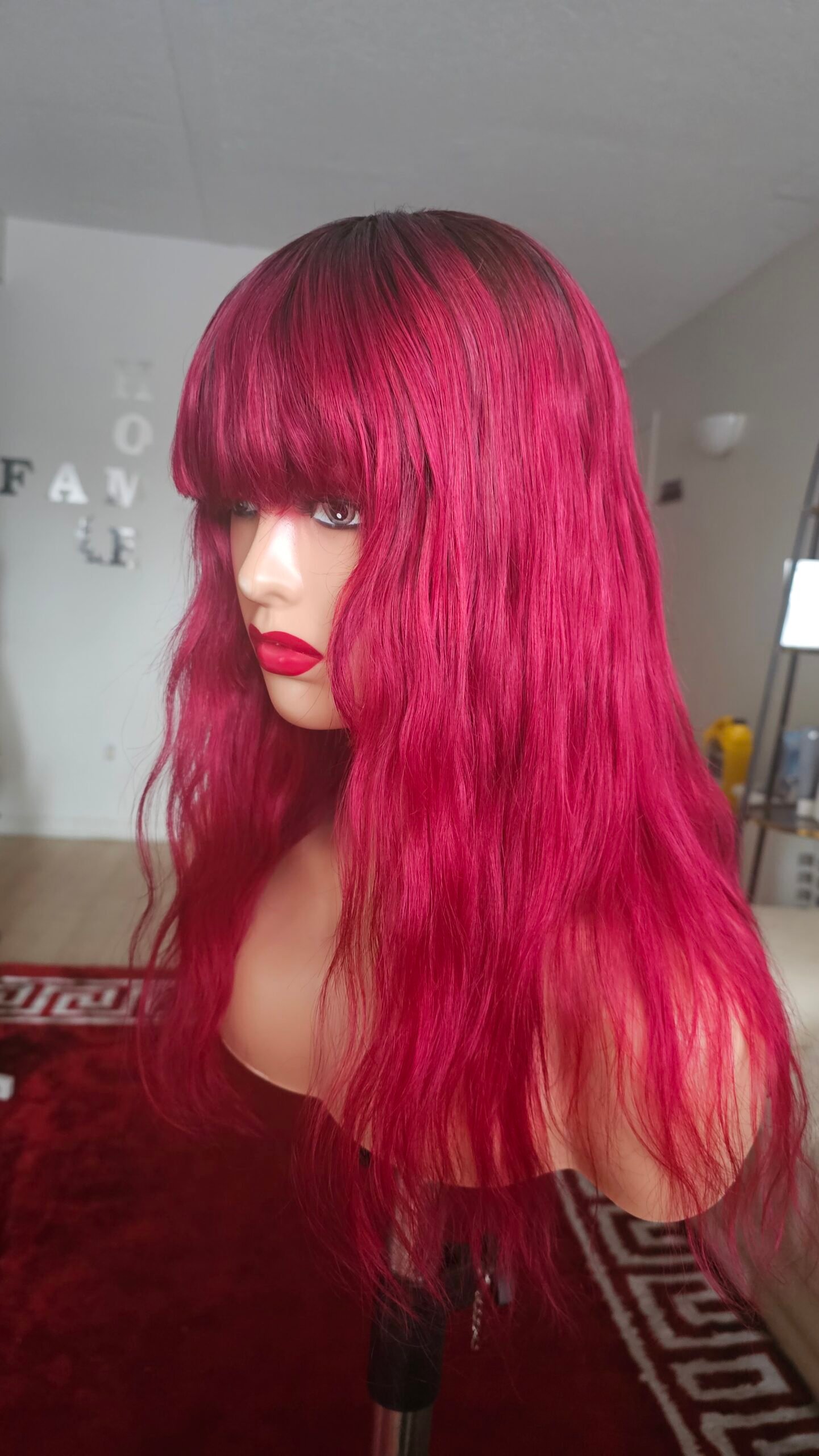 Laissez-vous séduire par cette perruque en cheveux humains de 20 pouces, dans une magnifique teinte bordeaux burgundy ombrée. Elle apporte une touche audacieuse et élégante, idéale pour un style affirmé et moderne